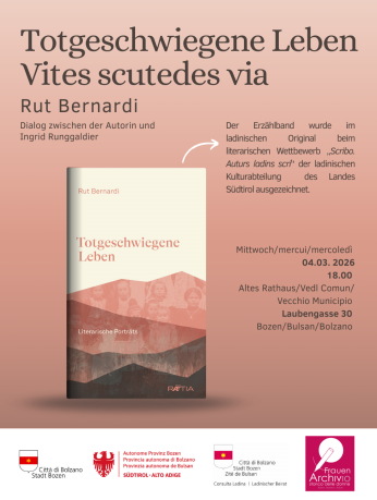In occasione delle iniziative dedicate all’8 marzo, la giornata Internazionale della Donna, il Frauenarchiv e la Consulta Ladina invitano alla presentazione del libro di Rut Bernardi “Totgeschwiegene Leben”.