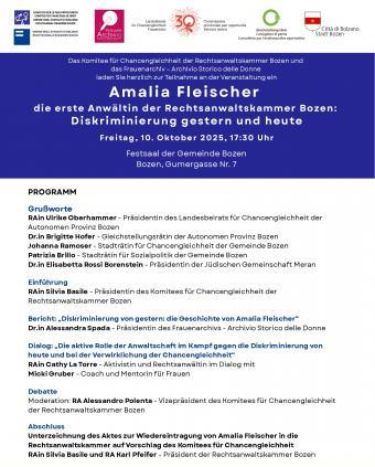Veranstaltet vom Komitee für Chancengleichheit der Rechtsanwaltskammer Bozen in Kooperation mit dem Frauenarchiv Bozen.